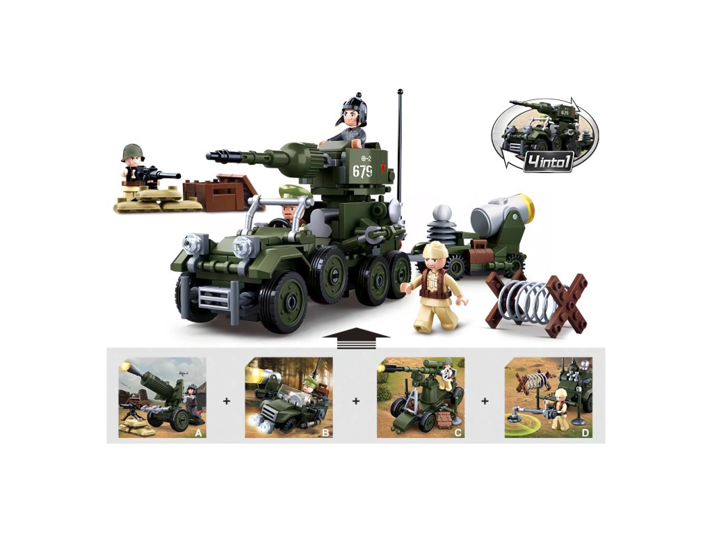 Ministavebnice bitevní techniky ze série WWII 4into1, jejíž kompletací vznikne možnost sestavit velký ucelený model dělostřeleckého tahače. Inovativní stavebnice Sluban je možno kombinovat s podobnými stavebnicemi mnoha dalších významných výrobců. Jsou vyráběny z kvalitního, nezávadného a odolného ABS plastu. Každá stavebnice je opatřena návodem k sestavení a balena v pestře potištěné papírové krabičce.