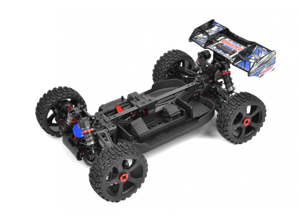 Spark se může pochlubit celou řadou prvků, od hliníkových ramen serva po jednodílný kompozitový článek řízení a 3mm hliníkový dvoupatrový systém řízení Ackermann 7075, tato buggy je postavena pro přesnost.
