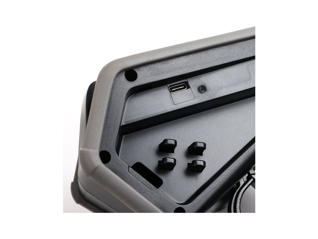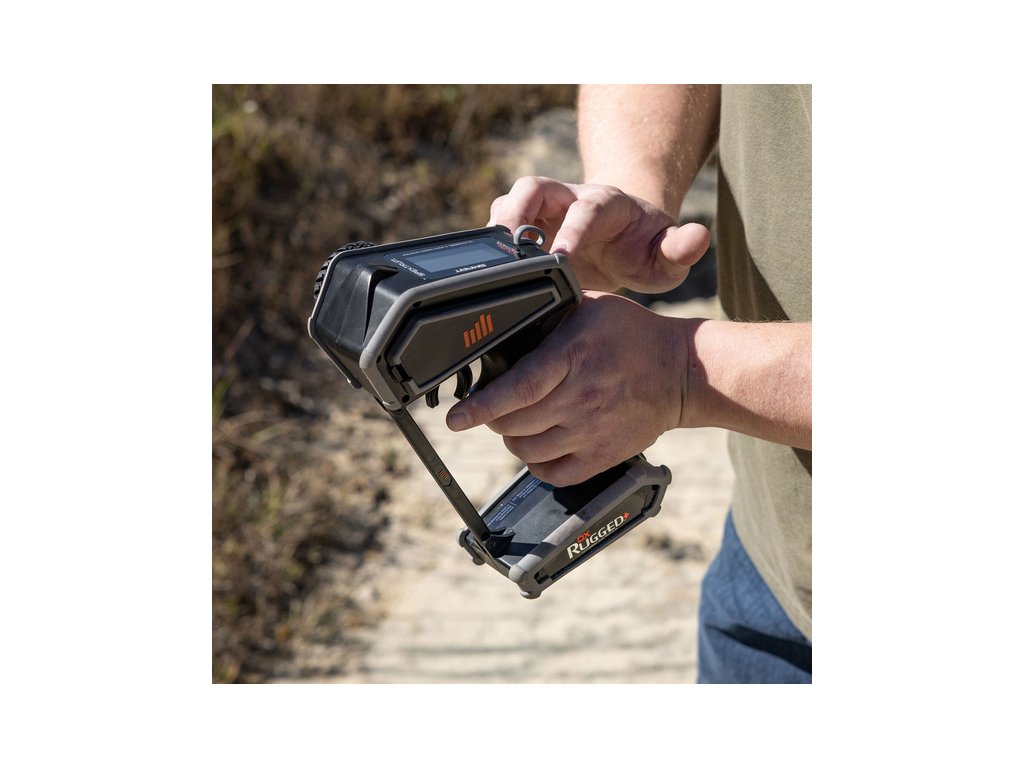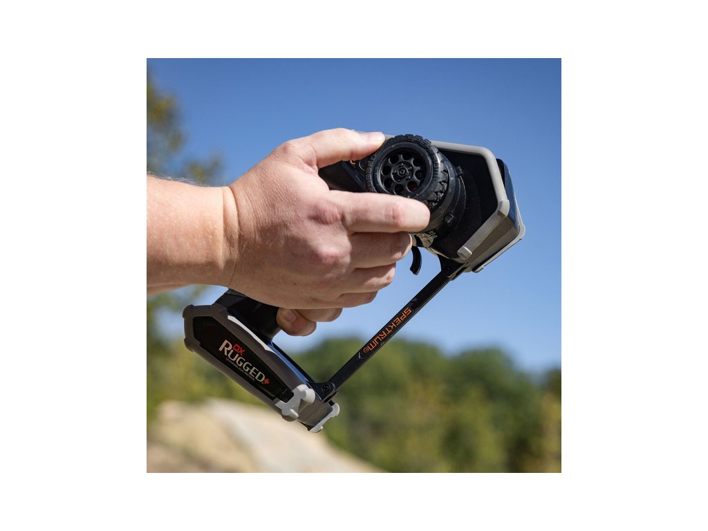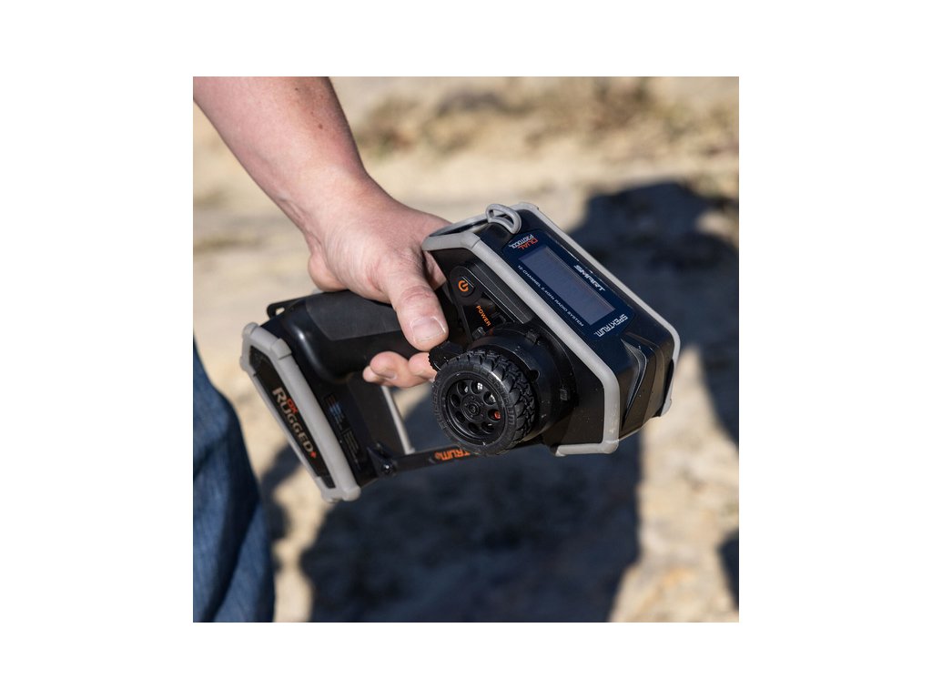 DX Rugged+ vyniká designem vysílače, který říká, že bez obav zvládáte i ten nejdivočejší terén, nejtěžší podmínky a nejtvrdší konkurenci. Proto jde odolnost ruku v ruce s pohodlím. Vestavěná boční přihrádka nabízí uložení nářadí a jsou dodávány i dva úchyty na řemínek na krk (jeden pryžový, druhý zalisovaný do šasi), takže můžete mít okamžitě volné ruce.