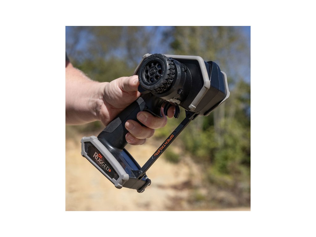 Ergonomicky osvědčené vysílače Spektrum Rugged vydláždily cestu k tomu, aby se u modelu DX Rugged+, každý řidič cítil jako doma. Máte proto možnost pocítit v ruce protiskluzovou rukojeť, která se příjemně drží, robustní volant a logicky uspořádané pomocné přepínače. Navíc vysílač je lehký a snadno se s ním manipuluje.