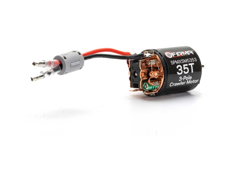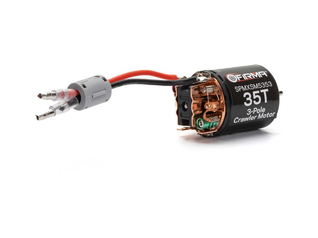 Stejnosměrný motor Spektrum Firma řady 540 s 35 závity, má standardní 3 zubový design pro maximální točivý moment a účinnost. Je určen pro RC modely aut typu crawler a expediční. Motor má precizní konstrukci se zapouzdřenými kuličkovými ložisky a vyměnitelnými kartáčky. Kartáčky jsou již z výroby tvarované. Pro náročné uživatele je možnost změnit nastavení časování motoru. Motor doporučujeme používat s 40A (a více) regulátorem.