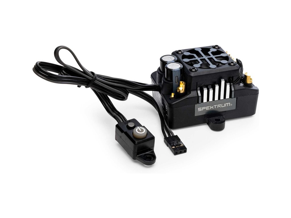 Elektronika regulátorů Spektrum Firma pro RC modely aut je kompletně zalita ve speciální zalévací hmotně, která brání vstupu vlhkosti či nečistot do elektroniky. Regulátor se zapíná a nastavuje tlačítky, které jsou pod pryžovým krytem.