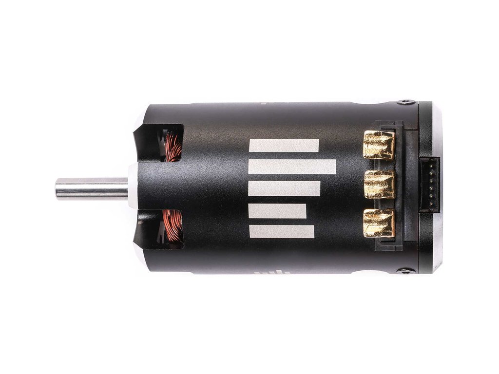 Motor se vyznačuje 4pólovým 8magnetovým rotorem, CNC opracovaným hliníkovým tělem, lakovaným měděným vinutím o vysoké čistotě, výstupní hřídelí z vysoce kvalitní legované oceli a přesnými kuličkovými ložisky pro odolnost a plynulé otáčení. Senzor motoru zajišťuje naprosto přesné otáčky vůči poloze plynu a hladký chod i v nízkých otáčkách bez zadrhávání.