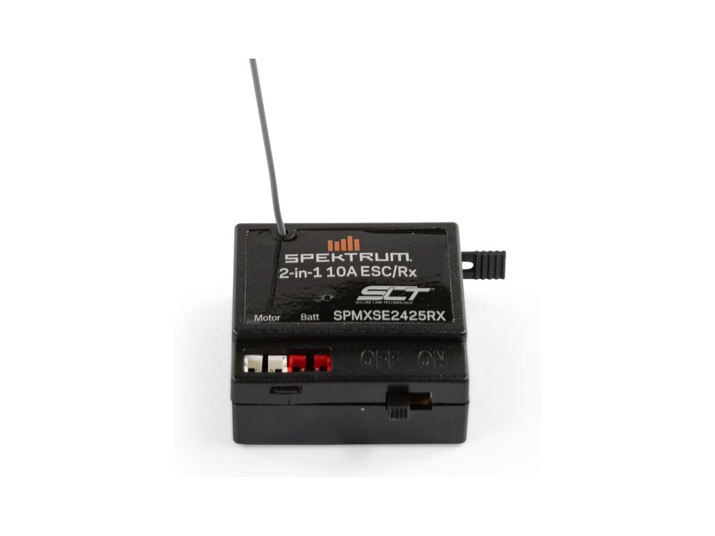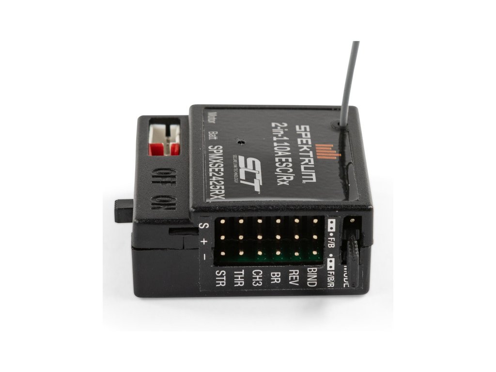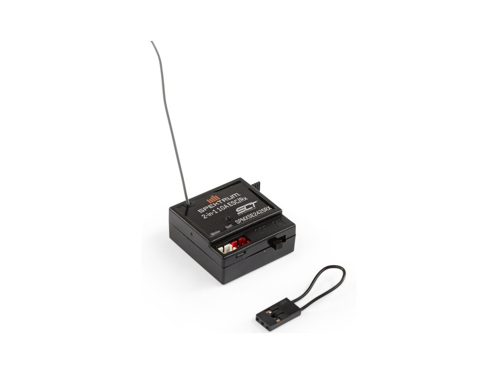 Náhradní díl pro RC modely aut Axial AX24: Spektrum řídící jednotka 2v1 3kanálová s integrovaným přijímačem SLT a stejnosměrným regulátorem regulátor 10A. Napájení 2S LiPo. BEC 5V/1A. Konektory JST-PH2.0. Jízdní režimy: vpřed/zpátečka/brzda nebo vpřed/zpátečka. Nastavitelná brzda v neutrálu na 0% (továrně), 25%, 50%, 75% a 100%. Ochrana proti podvybití LiPo akumulátoru na 6.4V. LED indikace stavu jednotky a Fail-Safe. Možnost zapojení externího regulátoru a využití jednotky jen jako přijímače.