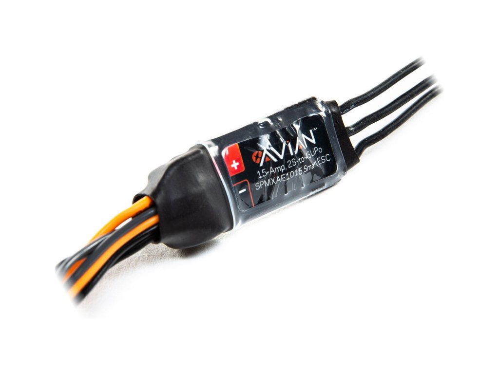 Pozor - Spektrum Avian Smart 15A ESC neobsahuje datový vodič SMART baterie a neposkytuje proud motoru. Data telemetrie baterie nebudou přenášena (teplota baterie, cykly baterie, vyvážení článků baterie). K dispozici bude pouze následující telemetrie; Vstupní napětí přijímače, teplota regulátoru a otáčky motoru.