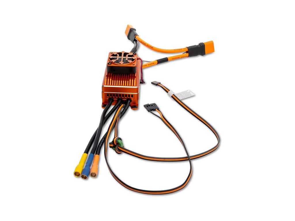 O řízení regulátoru se stará moderní 32-bitový mikrokontrolér ARM Cortex M4. Informace o typu, teplotě a napětí článků Smart baterie regulátor načítá přímo z baterie prostřednictvím datového vodiče. Takže již Již nepotřebujete žádné senzory či moduly, vše je jednoduše dohromady. Informace se Vám zobrazí na displeji vysílače (je nutné mít vysílač Spektrum 2. generace (Spektrum řady DX G2, NX a iX).