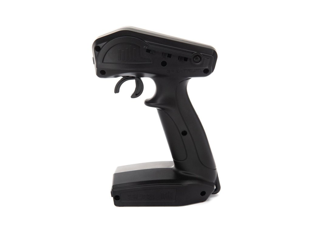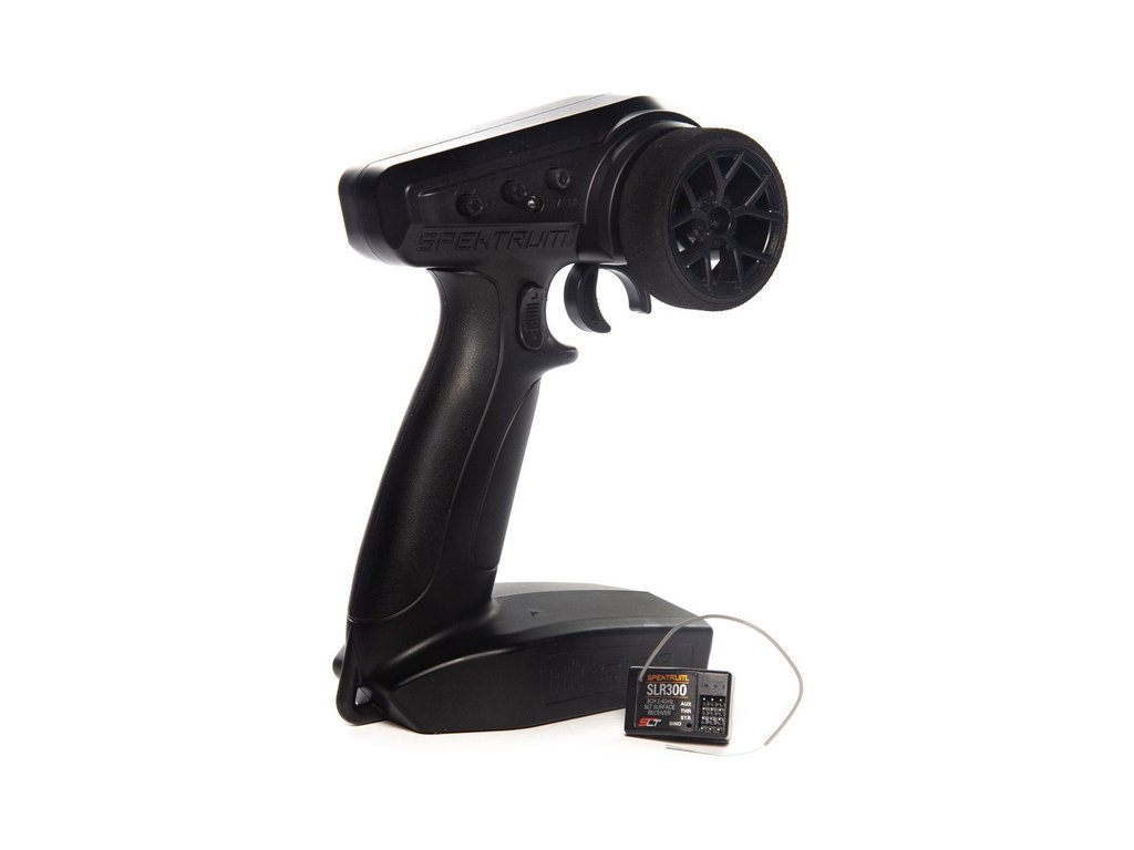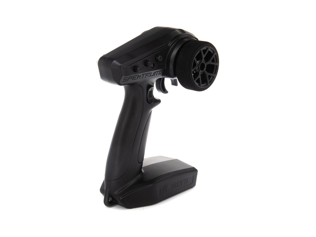 Jednoduchý a cenově dostupný 3-kanálový volantový vysílač Spektrum SLT3 2.4GHz, kompatibilní s protokoly SLT™ a s modulací FHSS. Obsažen přijímač SLR300. Ovládací prvky jsou limit plynu 50/75/100%, trimy plynu a řízení, 3-polohový přepínač třetího kanálu, reverz serva, dráha serva řízení a indikace stavu baterie vysílače pomocí LED diod.