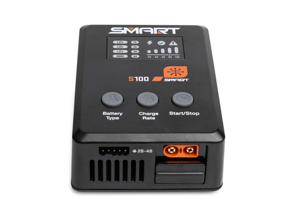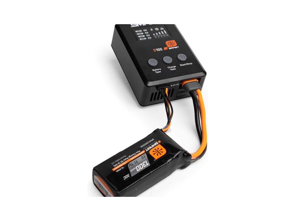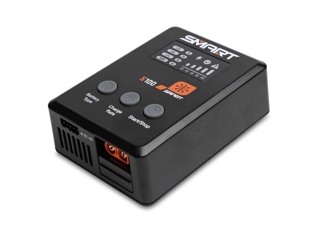 Nabíječ S100 je napájen přiloženým Spektrum™ 65W zdrojem a je praktickým nabíjecím řešením pro začátečníky. Vše, co potřebujete, je v balení. Baterie Smart G2 mají datový kabel s jedním jednoduchým připojením konektoru IC3® nebo IC5® – není proto potřeba samostatný balanční kabel. Můžete použit k nabíjení mnoha standardních hobby baterií 1S-4S LiPo, LiIon, LiHV, LiFe. Poznámka: S100 nebude nabíjet baterie jiné značky než Smart NiMH.