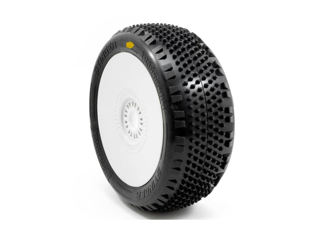 STINGER V4 BUGGY A2 (SOFT) nalepené pneumatiky, bílé disky, 2 ks.