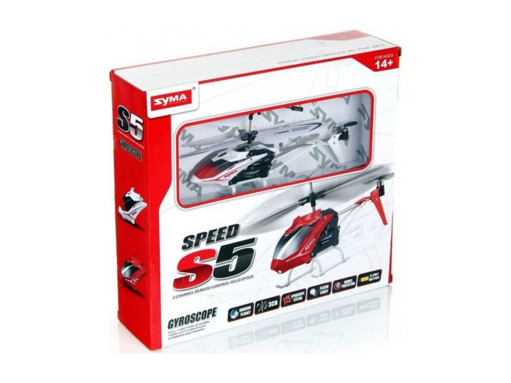 Syma S5 je novým RC vrtulníkem, vybaveným stabilizačným gyroskopickým systémem podporujíci letovou stabilitu. Představený model lze ihned po vybalení použit k provozu stačí pouze nabít baterii a dokoupit 4 ks AA tužkových baterií do dálkového ovladače. Syma je pro svou kvalitu velmi vyhledávaným produktem!