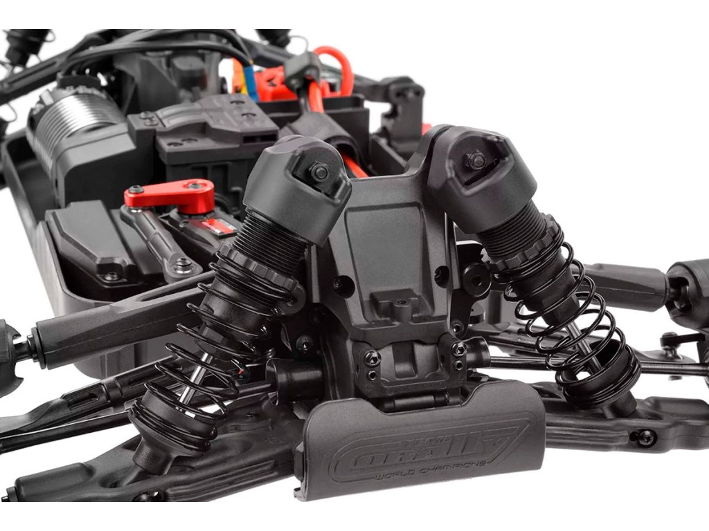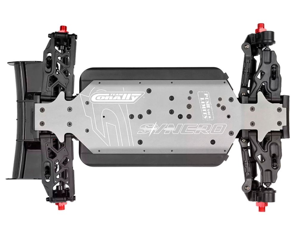 Team Corally se u podvozku modelu Syncro4 vůbec nedrží zpátky. Díky využití dobře známých a otestovaných ramen zavěšení z předchozích modelů, jako jsou Radix6 a Sketer, spolu s robustními předními a zadními těhlicemi zajišťuje Syncro4 špičkový výkon v jakémkoli terénu. Díky zařazení 4mm CNC frézovaných držáků ramen známých z modelu Spark XB6 a precizně zkonstruovaných linků (řízení, serva a zadních horních ramen) si model Syncro4 zachovává odolnost a bezkonkurenční výkon. I po zavedení nových plastových tlumičů a parohů si Team Corally pevně stojí za tím, že přináší systém odpružení, který nedělá kompromisy v kvalitě, odolnosti ani výkonu.