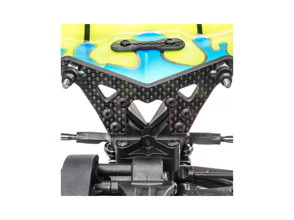Set stavebnice DC ELITE Race obsahuje přední a zadní uhlíkové věže tlumičů, montážní desku elektroniky a držák zadního křídla.