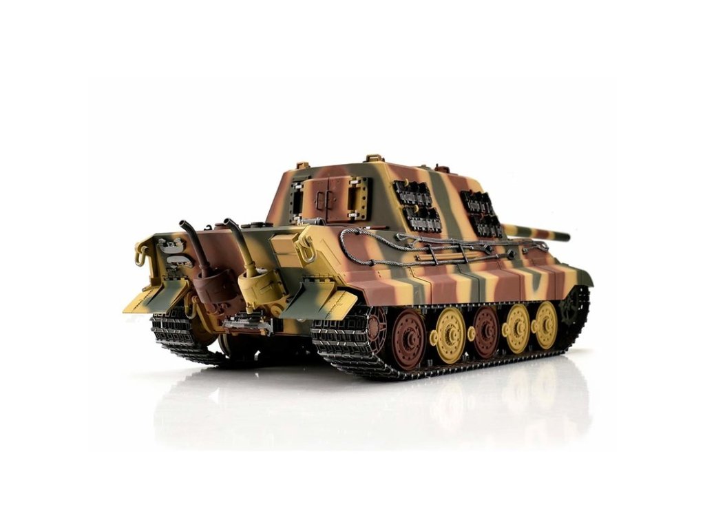 S hmotností kolem sedmi kilogramů je Jagdtiger ideální pro náročného zákazníka. V profesionální edici se vyznačuje vynikající kvalitou barvy airbrush, technologií desek plošných spojů 2,4 GHz a novým reproduktorem. Tento model má vynikající jízdní vlastnosti, širokou škálu funkcí a realistický zvuk. Vysoce kvalitní pásy, hnací a vodicí kola s válečky, stejně jako spodní část trupu a bojová věž jsou vyrobeny z kovu. Mnoho malých dílů a různých samolepek dokonale završuje repliku věrného měřítka.