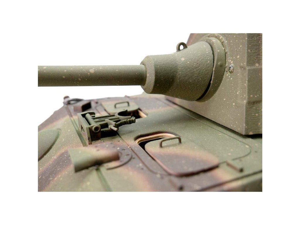 Výkonný model tanku má RC ovládání 2,4 GHz. Vozidlo je vybaveno IR bitevním systémem, takže jsou možné bitvy s vozidly ze stejné série. Motory s optimalizovaným točivým momentem dodávají modelu Panther F přesnou a plynulou jízdu. Kovové převody s robustními převody a vylepšeným převodem zajišťují větší výkon. Díky proporcionálnímu ovládání se můžete s tankem přiblížit velmi pomalu a plynule zvyšovat rychlost. Panther F se pohybuje dopředu a dozadu, také s otočením doleva a doprava. Lze jej také na místě otočit doleva nebo doprava. Můžete zvednout a spustit dělo a otočit věž o 360 stupňů. Realistický zážitek završují různé zvuky motoru, zpětný zákluz hlavně, záblesk hlavně a kouř z výfuku.