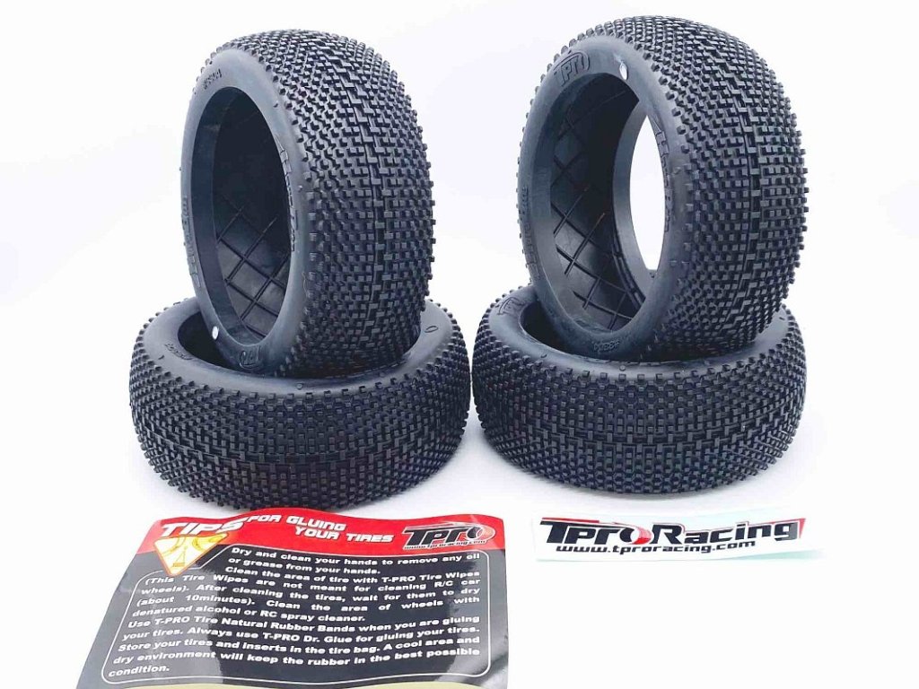 Naše pneumatiky TPRO jsou k dispozici ve 2 různých typech. Jednak jako nelepené pneumatiky v sadě po 4 kusech, nebo jako hotové lepené pneumatiky v páru po 2 kusech. U lepených kol se používá naše modrá vložka TPRO ve střední barvě (TP1309I3) a bílé disky v měkké provedení (TP100011SWH).