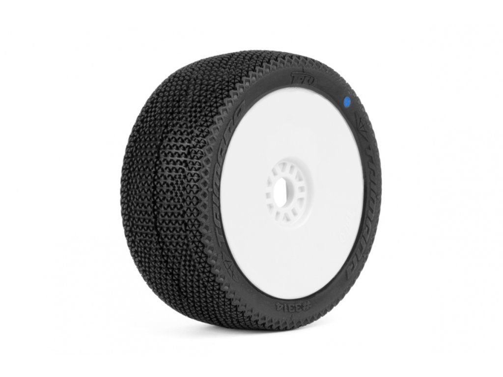 Naše pneumatiky TPRO jsou k dispozici ve 2 různých typech. Jednak jako nelepené pneumatiky v sadě po 4 kusech, nebo jako hotové lepené pneumatiky v páru po 2 kusech. U lepených kol se používá naše modrá vložka TPRO ve střední barvě (TP1309I3) a bílé disky v měkké verzi (TP100011SWH).