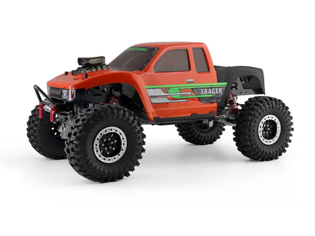 Tracer je technicky pokročilý off-road speciál pro opravdové nadšence s designem zaměřeným na zdolávání těch nejtěžších překážek. RTR verze je sestavena s rozvorem 313 mm, portálovými nápravami, 10,6% zvýšenými otáčkami přední nápravy (overdrive), dvěma servy pro dvounápravové přízení a barevnou lakovanou karoserií.