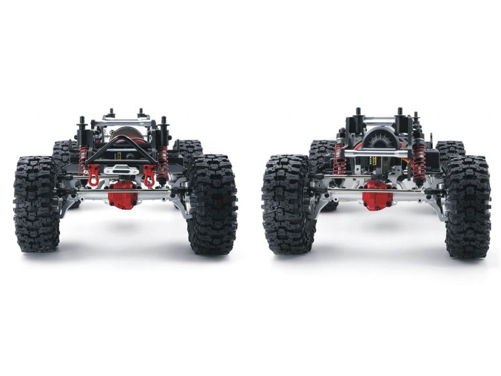 RTR verze obsahuje výkonný 20T RC550 stejnosměrný motor, 60A voděodolný regulátor Hobbywing, dvojici 15kg serv s kovovými převody pro přední i zadní nápravu a G4P-4WS 2,4Ghz rádio.