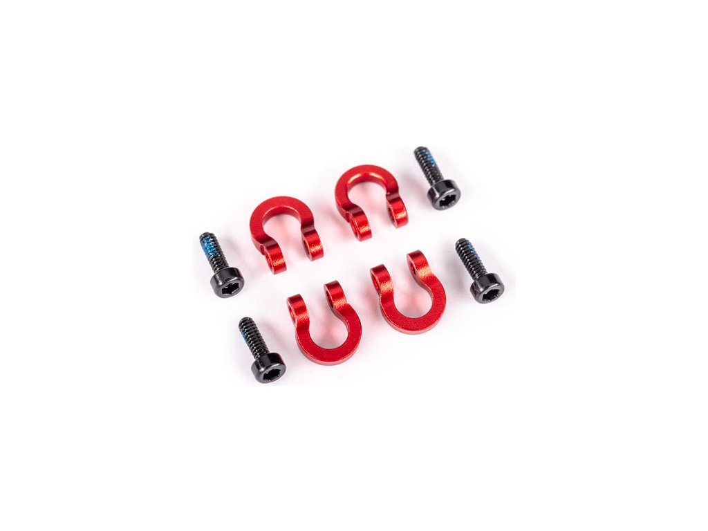 Náhradní D-očka pro tuningové nárazníky TRA9734X / TRA9735X z červeně eloxovaného hliníku 6061-T6, 4ks, včetně montážních šroubů 1.6x5 mm CS. D-očka nelze instalovat na tovární nárazníky.