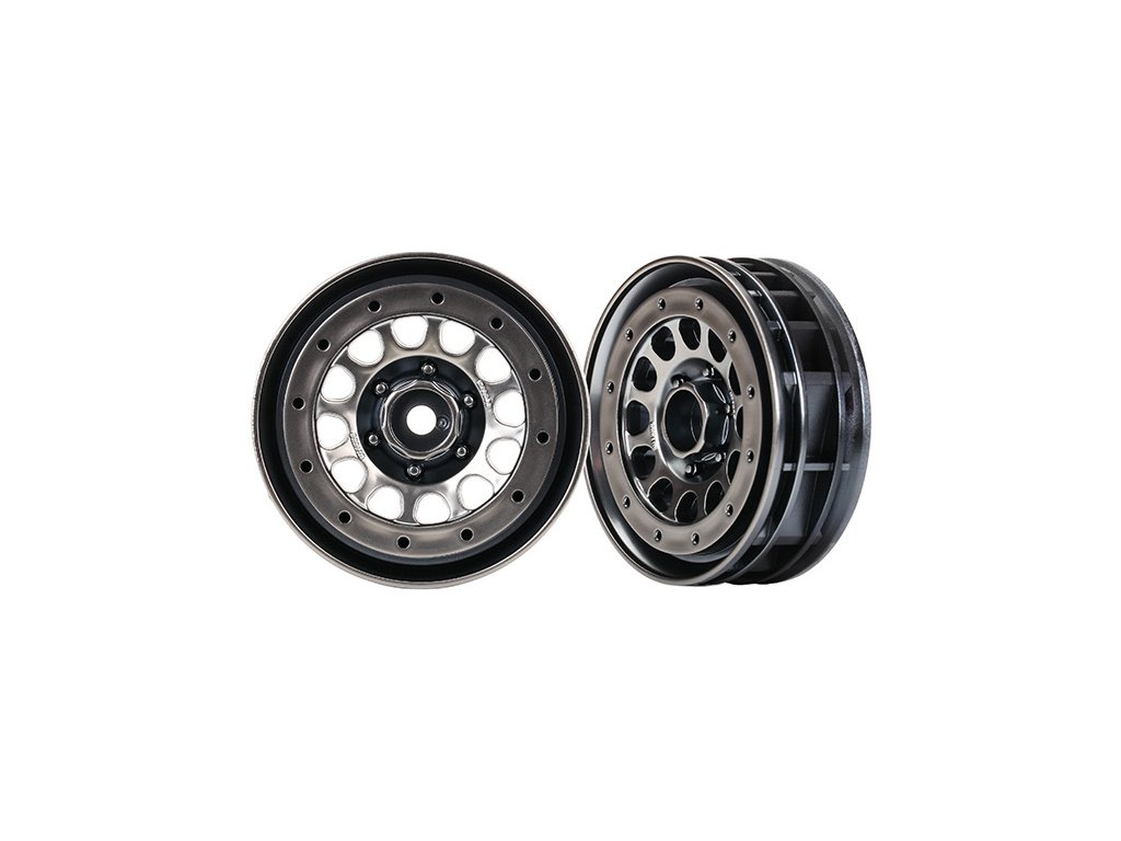 Traxxas hliníkový výztužný bead lock kroužek disků kol Method 105 1.9". Šedě eloxovaný povrch. Balení obsahuje celkem 4 kusy kroužku se sadou šroubů M2x10 mm se zapuštěnou hlavou.
