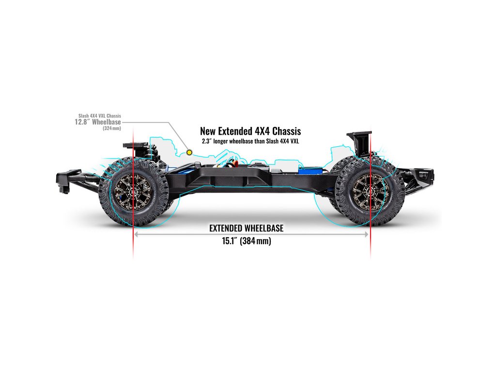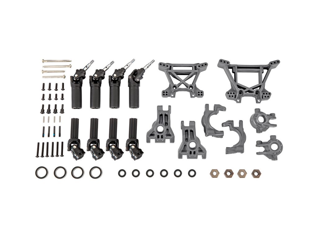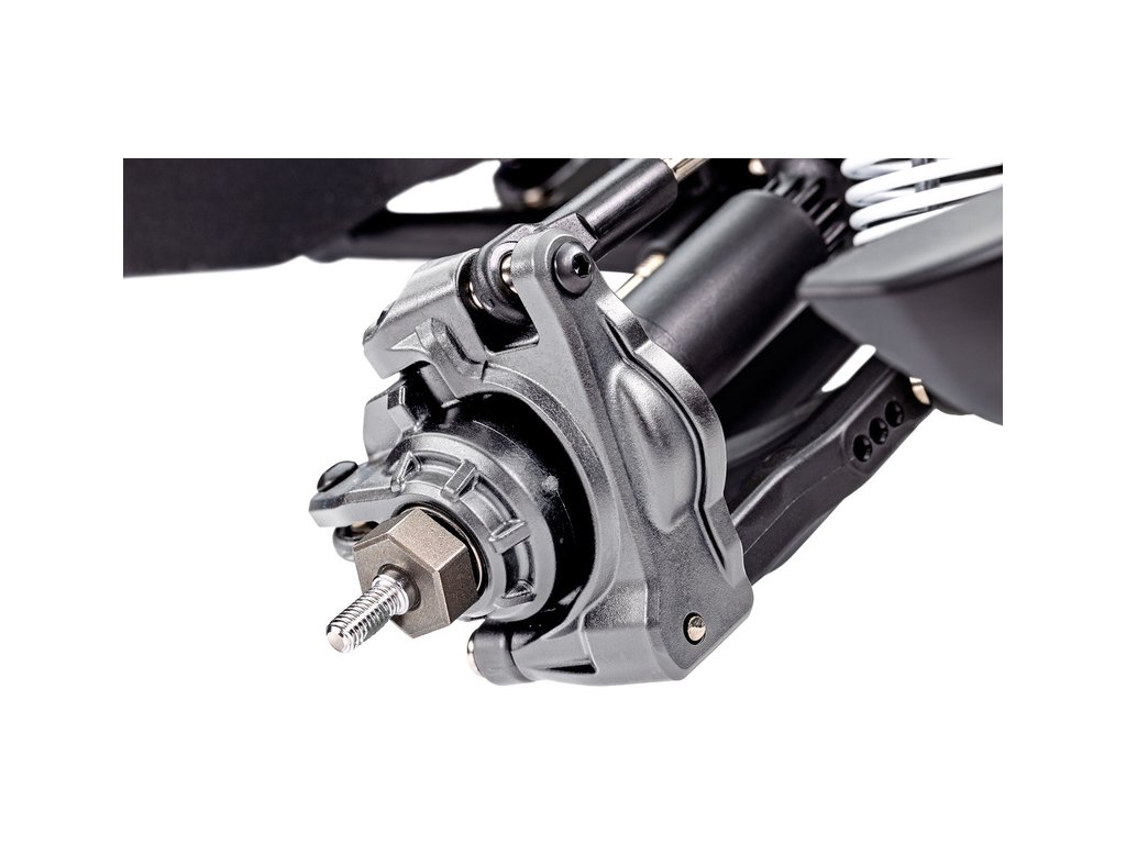 Továrně instalovaná sada zavěšení a prvků pohonu - Extreme Heavy Duty (u jiných modelů dostupná pouze jako samostatný placený tuning), je vyrobena z těch nejodolnějších materiálů, které společnost Traxxas používá.