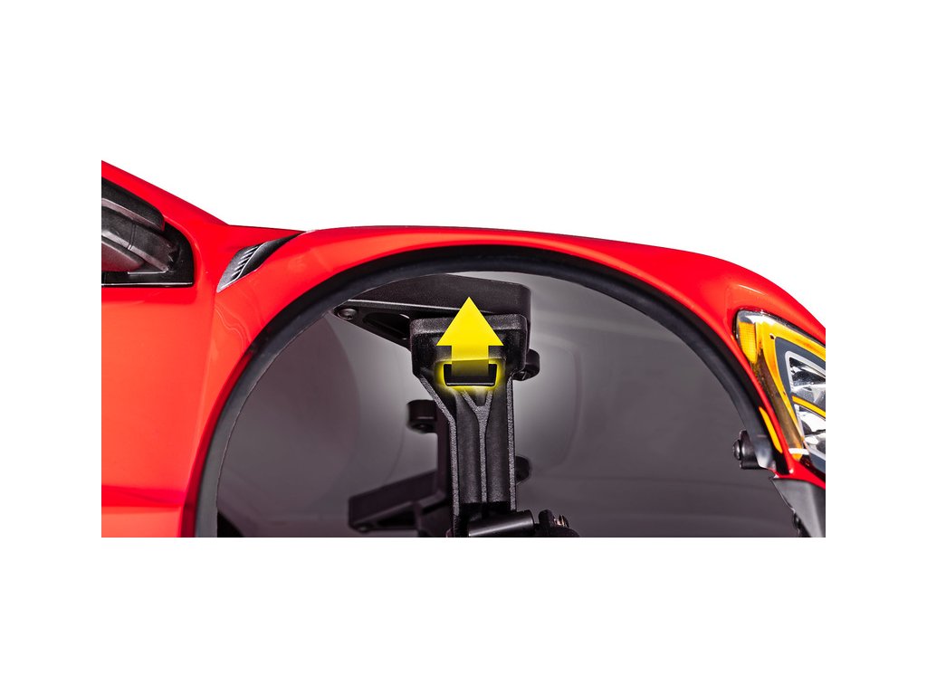 Unikátní systém uchycení karoserie pomocí zobáčků v podbězích kol, umožňuje rychlou výměnu baterie a čistý vzhled modelu neruší klipy.