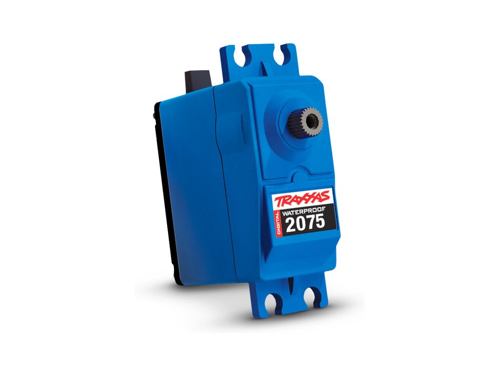 Digitální Traxxas servo 2075 high-torque voděodolné se stejnosměrným motorem a nylonovými převody má moment 9.0 kg.cm a rychlost 0.17 s/60°@ 6.0 V. Pro odolnost vůči vodě* je krabička serva a výstupní tisícihran osazen těsněním. Dvě kuličkové ložiska poskytují velmi hladký chod.