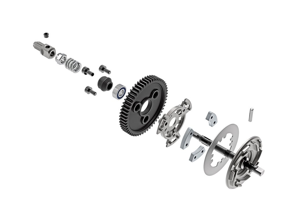 Třecí spojka využívá speciální polokovový třecí materiál a tlakové desky z hliníkových slitin pro rozptýlení tepla a zajištění konzistentní kontroly trakce. Intenzitu prokluzu spojky lze nastavit bez demontáže modelu.