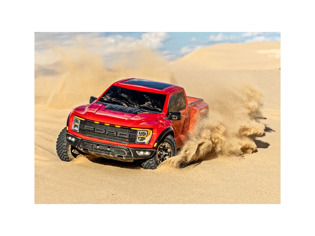 RC model auta Traxxas Ford F-150 Raptor R v měřítku 1:10 v sobě skloubí licencovanou karoserii, realisticky zpracovanou do nejmenších detailů podle skutečného vozu a extrémní výkon s přesným ovládáním. Brutální akcelerace střídavého pohonu VXL-3S a rychlost až 96 km/h je doplněna o továrně instalovanou sadu pro vysokou odolnost modelu - Extreme Heavy Duty.