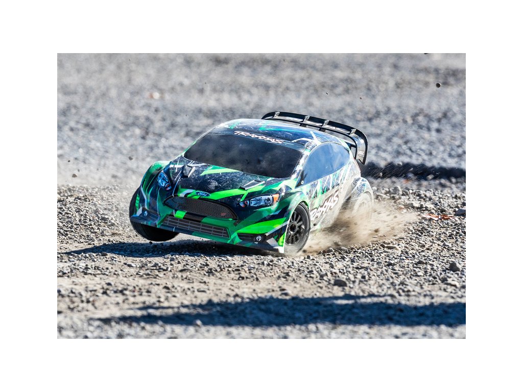 RC model auta Traxxas Ford Fiesta ST Rally VXL s licencovanou karoserií ve stylu populárních závodů rally. Je postaven na osvědčeném šasi Slash s náhonem 4x4 a je tak vhodný na tvrdé povrchy jako je asfalt, ale i do terénu, či nižší trávy. Model v měřítku 1:10 je poháněn vysoce výkonnými komponenty - střídavým motorem a regulátorem VXL-3S, jež poskytují ohromující akceleraci a rychlost až 96 km/h. Pro jisté řízení i ve vyšších rychlostech obsahuje Ford Fiesta elektronickou stabilizaci jízdy TSM. Navíc je model továrně vybaven sadou Extreme Heavy Duty pro vysokou odolnost a exkluzivním bez-sponkovým systémem upínání karoserie.