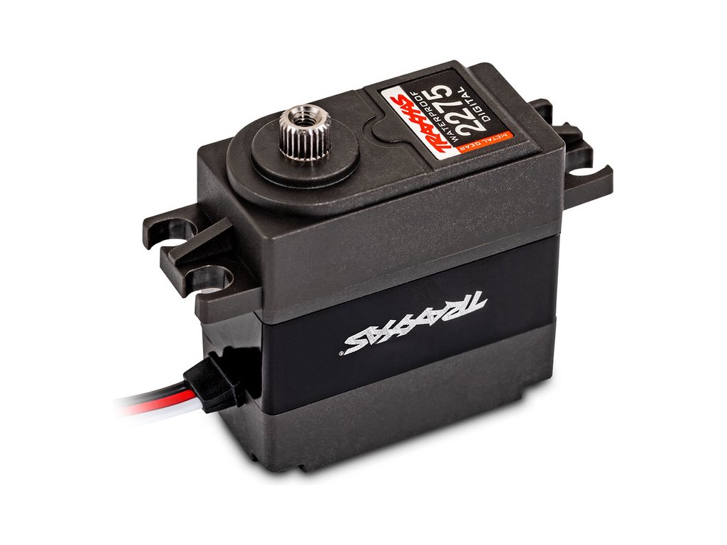 Zcela nové, voděodolné* servo řízení Traxxas 2275 má ohromnou sílu 25 kg.cm. Servo je vybaveno kovovými převody, dvěma kuličkovými ložisky pro hladký chod a kovovou středovou krabičkou pro účinné chlazení.