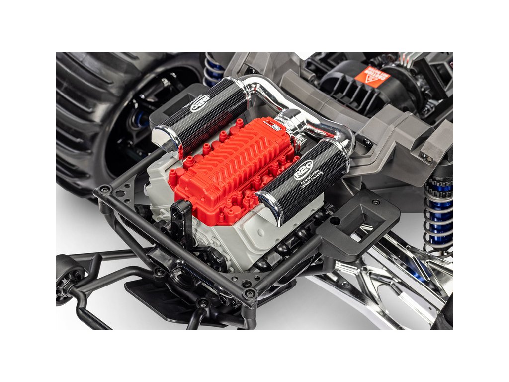 RC model auta je vybaven nejvýkonnějším střídavým pohonem od Traxxas – regulátorem Velineon® VXL-8s™ a motorem 1200XL. Vysoce výkonný regulátor VXL-8s zajišťuje maximální výkon v celém rozsahu otáček. Regulátor navíc podporuje telemetrii, kterou si můžete zobrazit v aplikaci, stačí si jen dokoupit Bluetooth modul do vysílač.