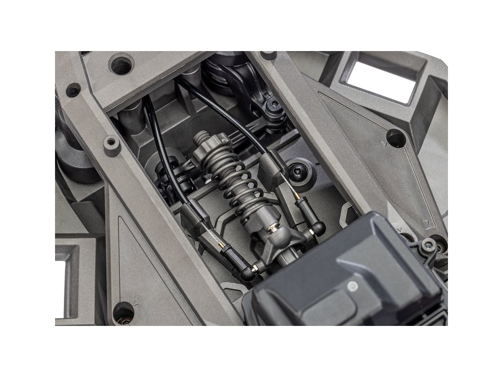 Masivní tlumiče GT Maxx jsou přesně navrženy a naladěny pro tento velký model. Tvoří je hliníkové, barevně eloxované tělo, pevné ocelové pístnice s kulovými čepy, masivní pružiny a přesné těsnící X-kroužky. Pro správnou funkci jsou tlumiče naplněny olejem s optimální viskozitou. Maketový vzhled doplňují imitace přídavných nádržek oleje.