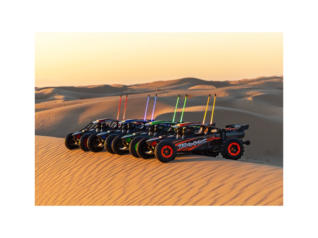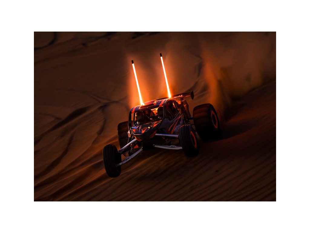 Barevné světelné tyče stoupají více než 25 cm nad karoserii a poskytují dobrý přehled o poloze modelu i při jízdě po dunách rychlostí přes 90 km/h. Světla jsou barevně sladěna s karoserií, což modelu dodává dramatický vzhled. Nové pružinové úchyty Flex-Tech™ umožňují, aby se světelné tyče bez poškození ohýbaly, například při převrácení.