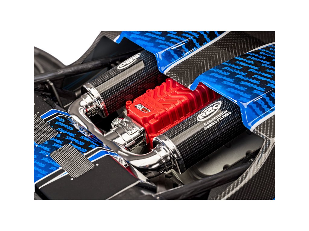 RC model auta je vybaven speciálně naladěným elektronickým střídavým regulátorem VXL-8S. Vstupním napětí 4, 6 nebo 8 čl. LiPo (max. 33.6 V). Jednoduché nastavení jedním tlačítkem. Indikace stavu LED diodami. Odvod tepla pomocí masivního chladiče a ventilátoru. Vodě-odolná* konstrukce. Zlacené konektory 6.5mm. 2-stupňová detekce nízkého napětí LiPol akumulátorů, tepelná ochrana a přepěťová ochrana.