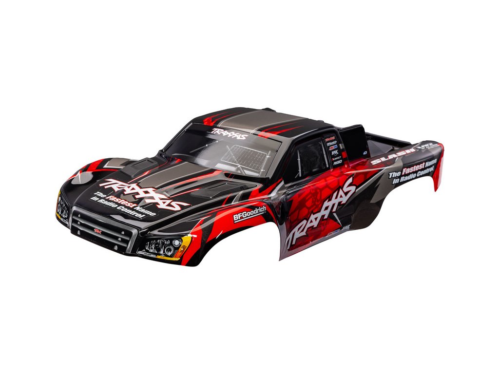 Náhradní díl pro RC modely aut Traxxas Slash 2WD VXL a 4WD: karosérie červená bezsponková. Hotové zbarvení ProGraphix® s předem aplikovanými obtisky. Sestavená karosérie s předními a zadními bezsponovými západkami.
