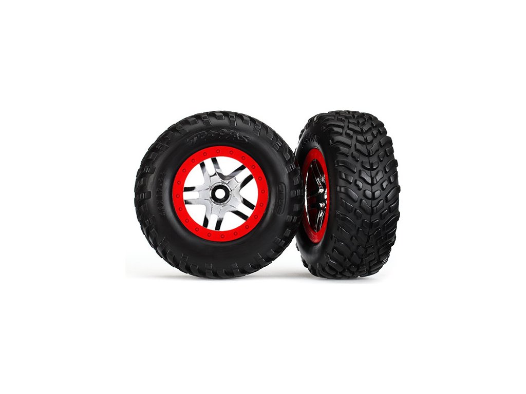 Traxxas kolo 2.2/3.0", disk SCT Split-Spoke stříbrný-červený, pneu SCT(2)