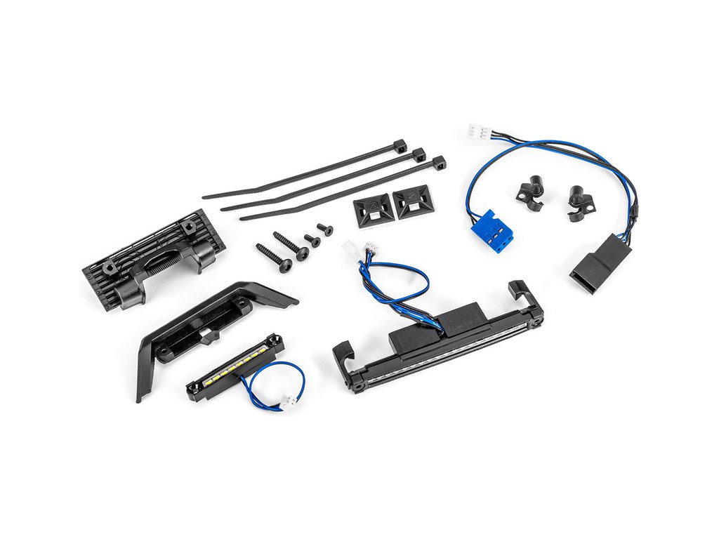Balení obsahuje střešní LED lištu, přední LED lištu a držáky pro montáž na modely TRX-4M Defender, nebo TRX-4 M Bronco a další montážní příslušenství. Manuál EN, DE, FR, SP.