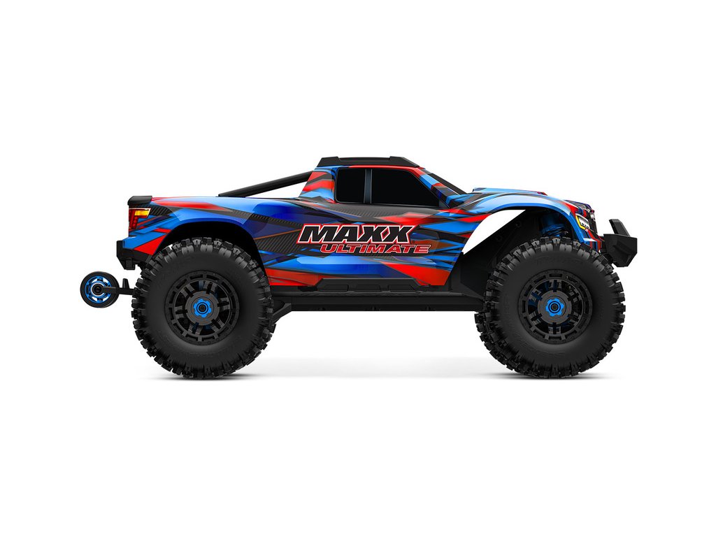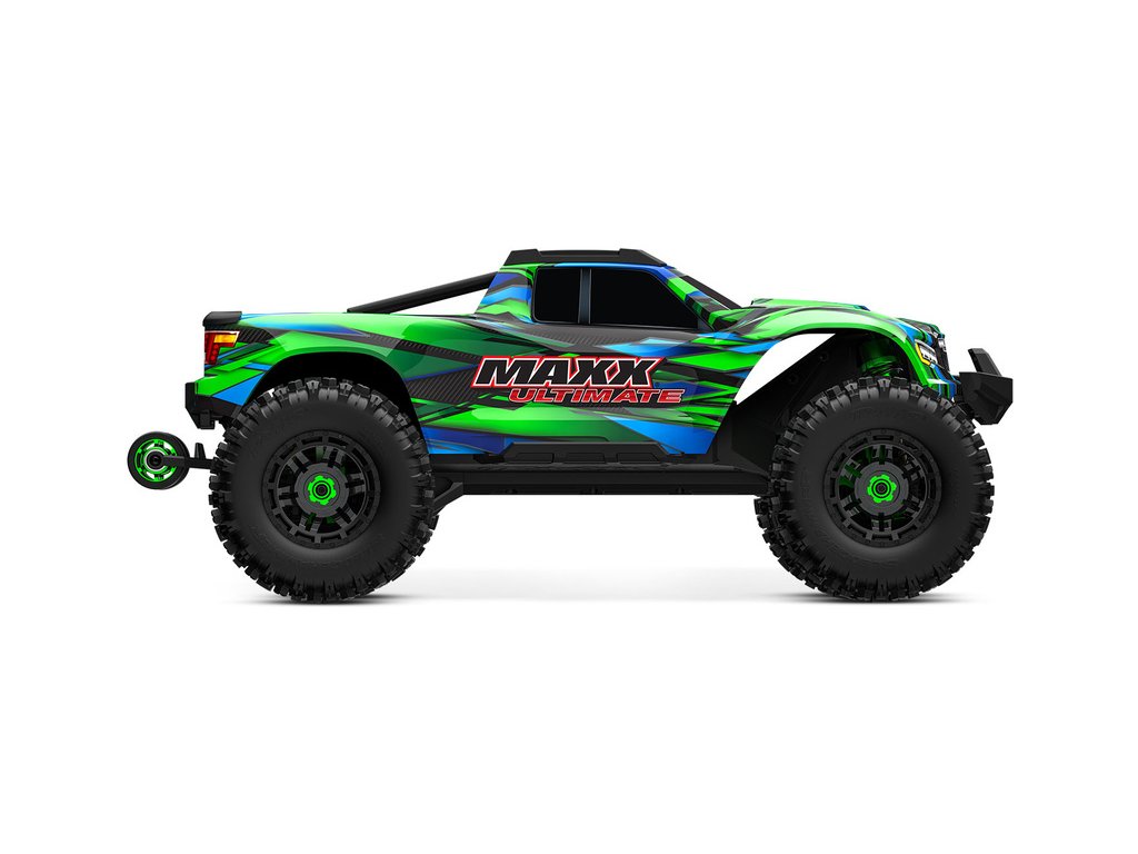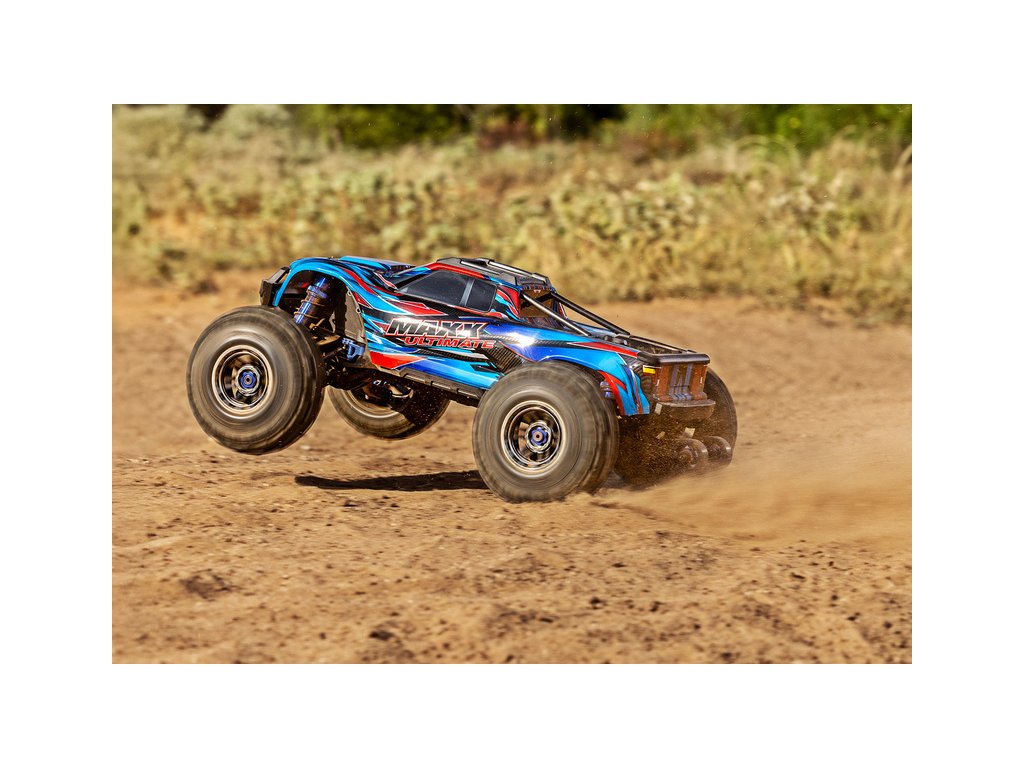 RC model Traxxas Maxx si bere to nejlepší od svého větší bratra X-Maxxe, ale přichází v menším kompaktním měřítku 1:8. Konstrukce šasi byla zachována a vyznačuje se bezkonkurenční pevností. V této vrcholné verzi Ultimate je navíc model již v základu vybaven těmi nejžádanějšími tuningovými díly z eloxovaného hliníku, ocelovými poloosami, hliníkovými tlumiči s titanovými pístnicemi, výkonnějším servem řízení a instalovaným Bluetooth modulem, který spojí model s aplikací v mobilním zařízení a umožňuje nastavení modelu a zobrazení telemetrie, jako je rychlost, otáčky, napětí akumulátoru a další. Nový Maxx se nezalekne žádného terénu a překoná ho rychlostí 96 km/h. Extrémní výkon a akceleraci dodává střídavý motor 540XL a regulátor VXL-4S. O přesnou a bezpečnou jízdu i ve vysokých rychlostech se postará RC souprava Traxxas TQi 2,4 GHz s elektronickou stabilizací jízdy TSM.