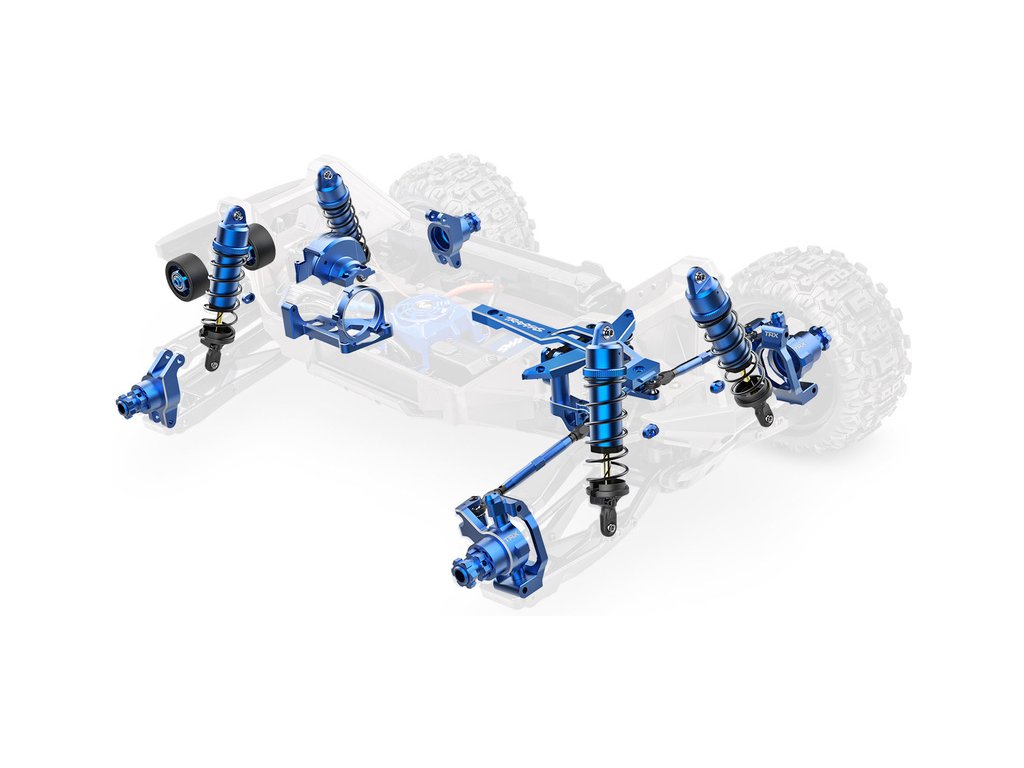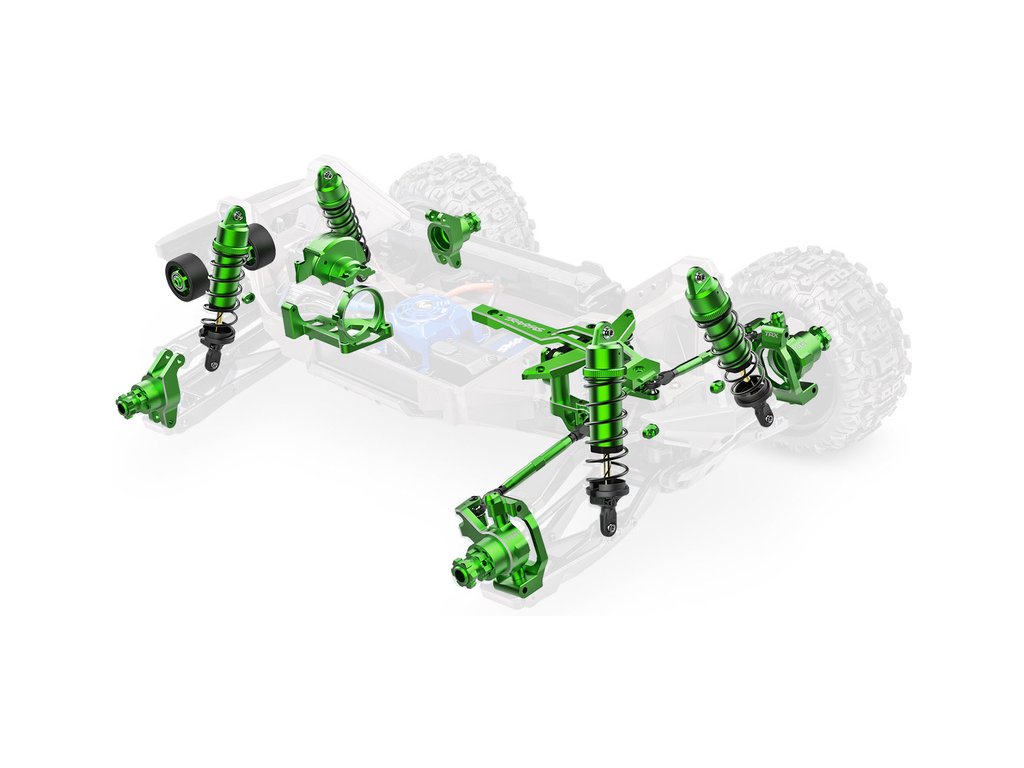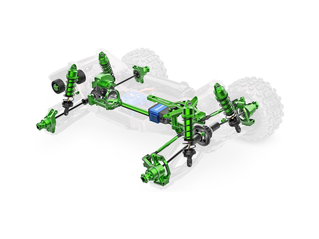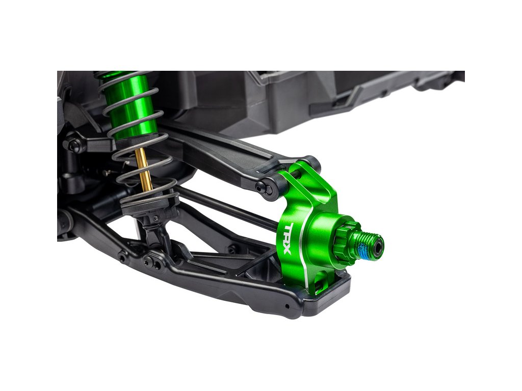 Maxx Ultimate přichází plně nabitý hliníkovými díly pro maximální pevnost a odolnost, které jsou navíc barevně sladěny. Jasně eloxované komponenty vypadají stejně dobře jako fungují a dodávají vysokou pevnost pro extrémní jízdu. Ocelové hnací hřídele CV nabízejí maximální a efektivní přenos výkonu.