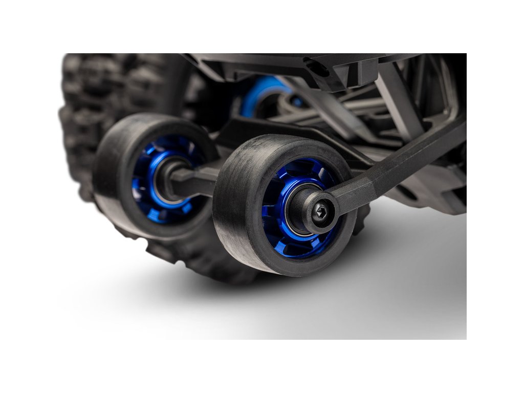 Zadní kolečka Wheelie Bar jsou nezbytná na modelu s takovým výkonem, jako je Maxx. Pomáhají předcházet nechtěnému převrácení při přidání plného plynu a umožňují efektní jízdu po zadních kolech. Kolečka jsou hliníková s vnější gumovou směsí a usazená v kuličkových ložiscích.