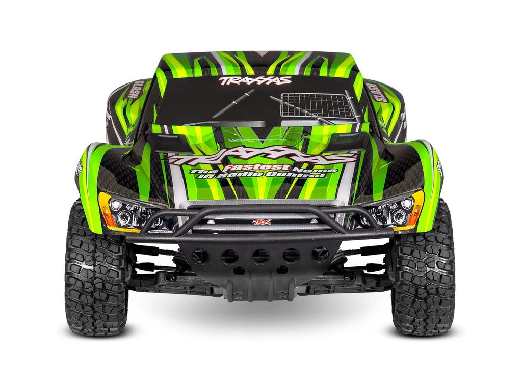 Traxxas Slash je RC model auta 1:10 s náhonem 2WD, který jezdí rychlostí až 48 km/h. Je plně sestaven a připraven k jízdě ihned po vybalení z krabice. Pohání jej výkonný stejnosměrný motor Titan 550 12T s regulátorem XL-5. Jednoduchá RC souprava Traxxas TQ 2.4 GHz poskytuje precizní mechaniku pro přesné řízení. Obsažen je NiMH akumulátor a moderní USB-C nabíječ pro bezpečný a bezstarostný provoz. Nově je na modelu použitý bezsponkový systém uchycení karoserie pro snadnou výměnu baterie a továrně jsou instalovány prvky zavěšení Extreme Heavy Duty pro vysokou odolnost.