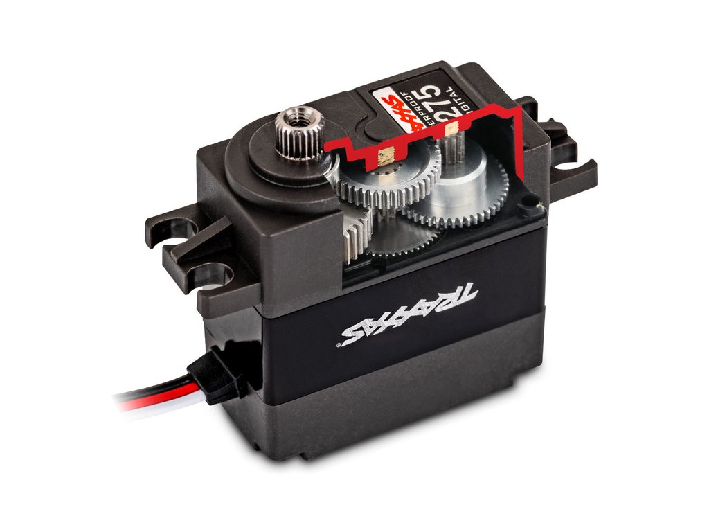 Zcela nové, voděodolné* servo řízení Traxxas 2275 má ohromnou sílu 25 kg.cm. Servo je vybaveno kovovými převody, dvěma kuličkovými ložisky pro hladký chod a kovovou středovou krabičkou pro účinné chlazení.