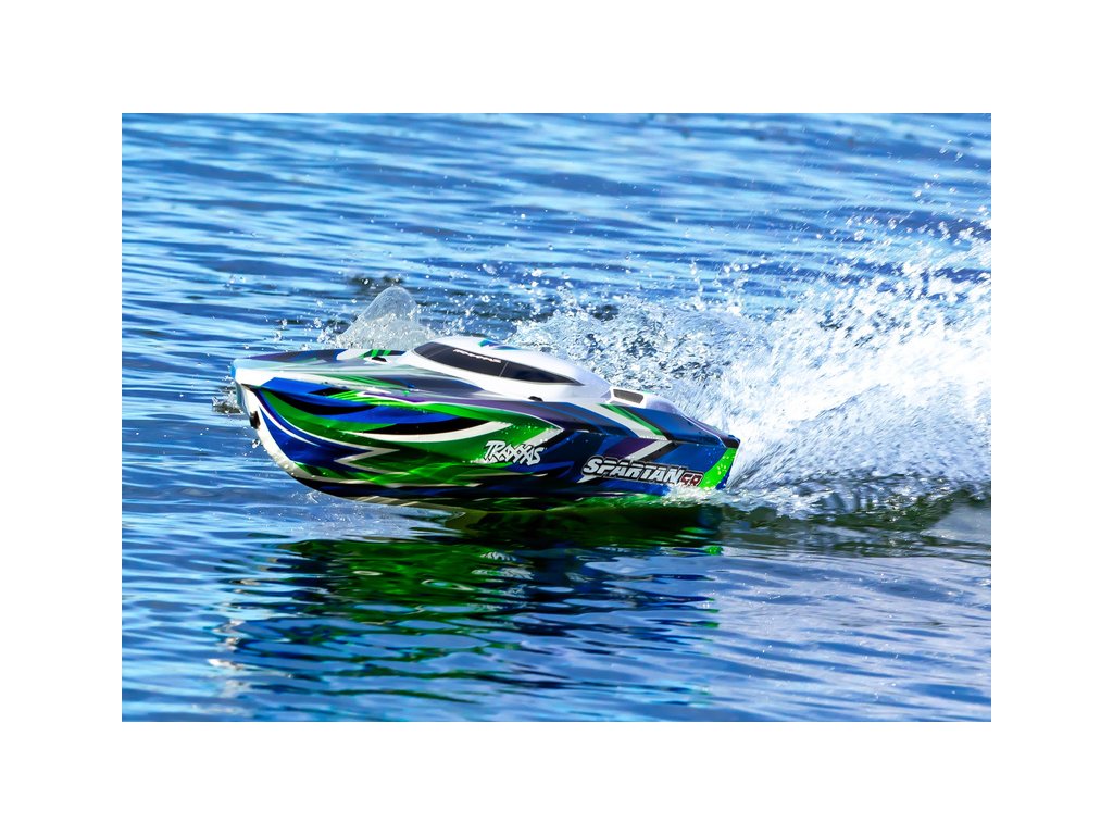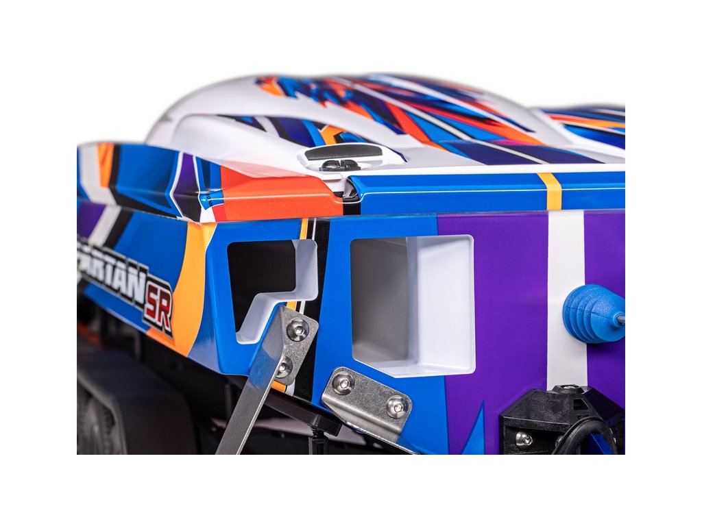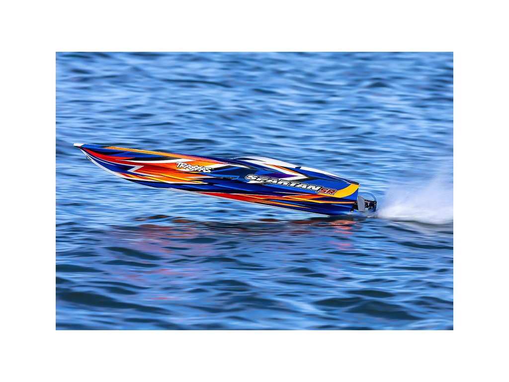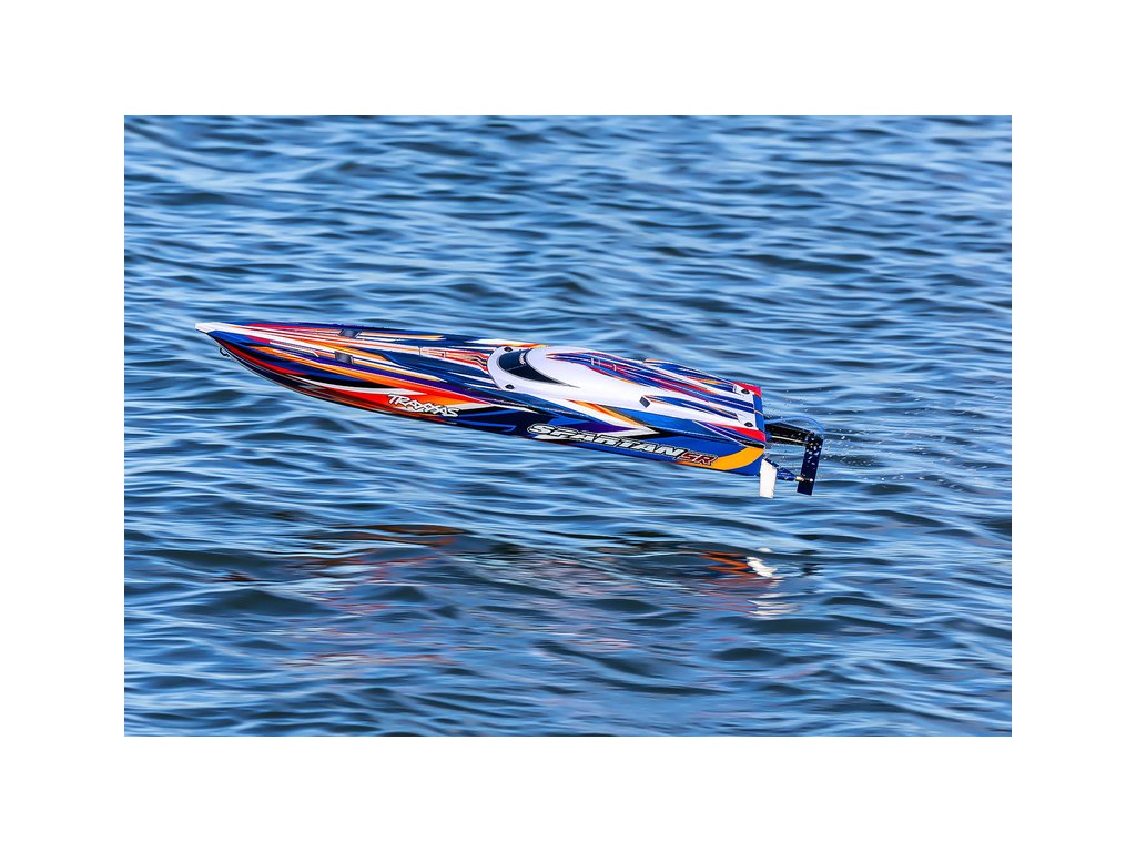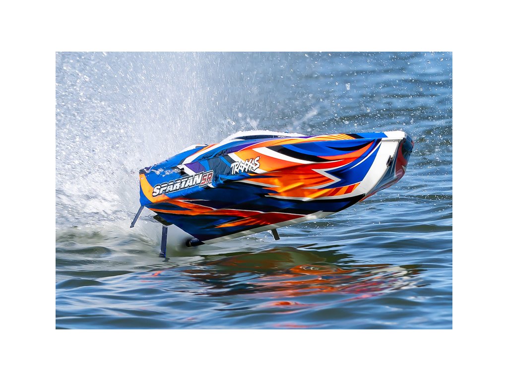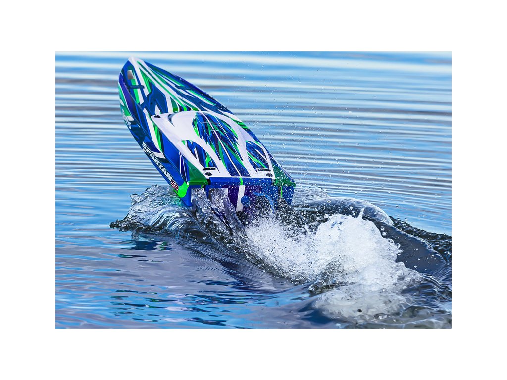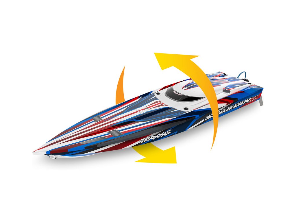 Extrémně výkonný a rychlý RC model lodi Traxxas Spartan SR 36", se kterým si užijete adrenalinovou zábavu. Špičková konstrukce, střídavý pohon a elektronická stabilizace vytvářejí bezkonkurenční kombinaci přesného řízení s rychlostí až 80 km/h, která nechá všechny za sebou. V případě převrácení modelu je loď nově vybavena funkcí Self-righting.