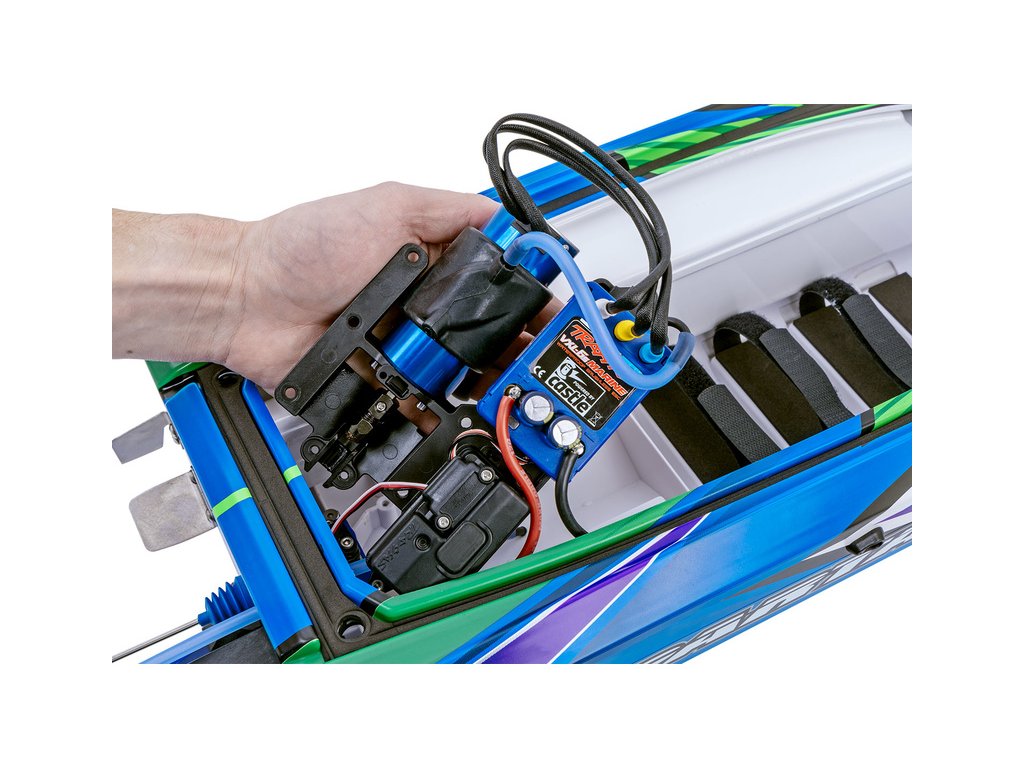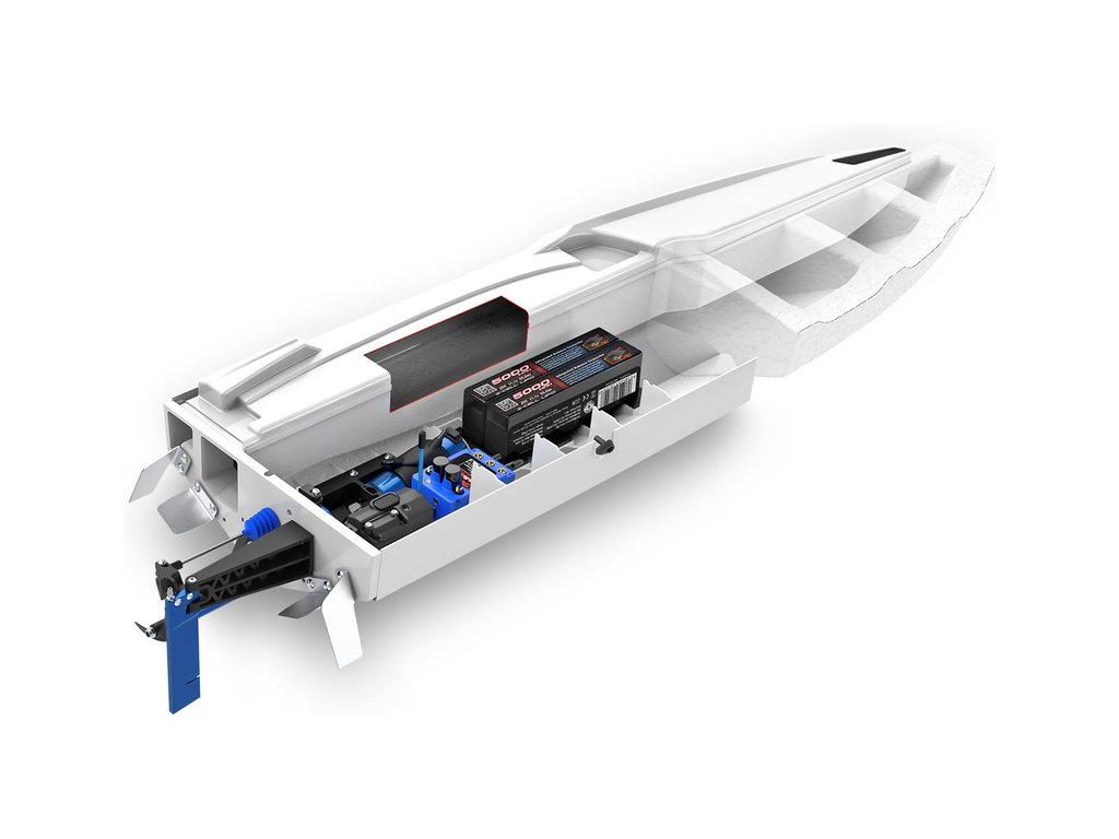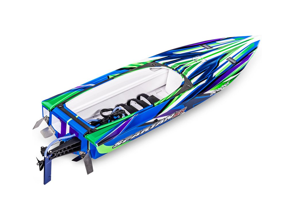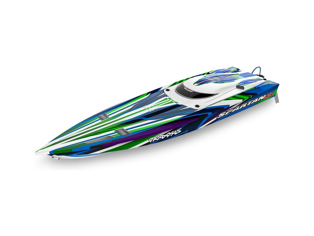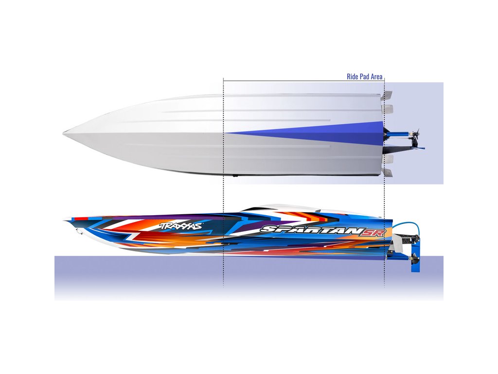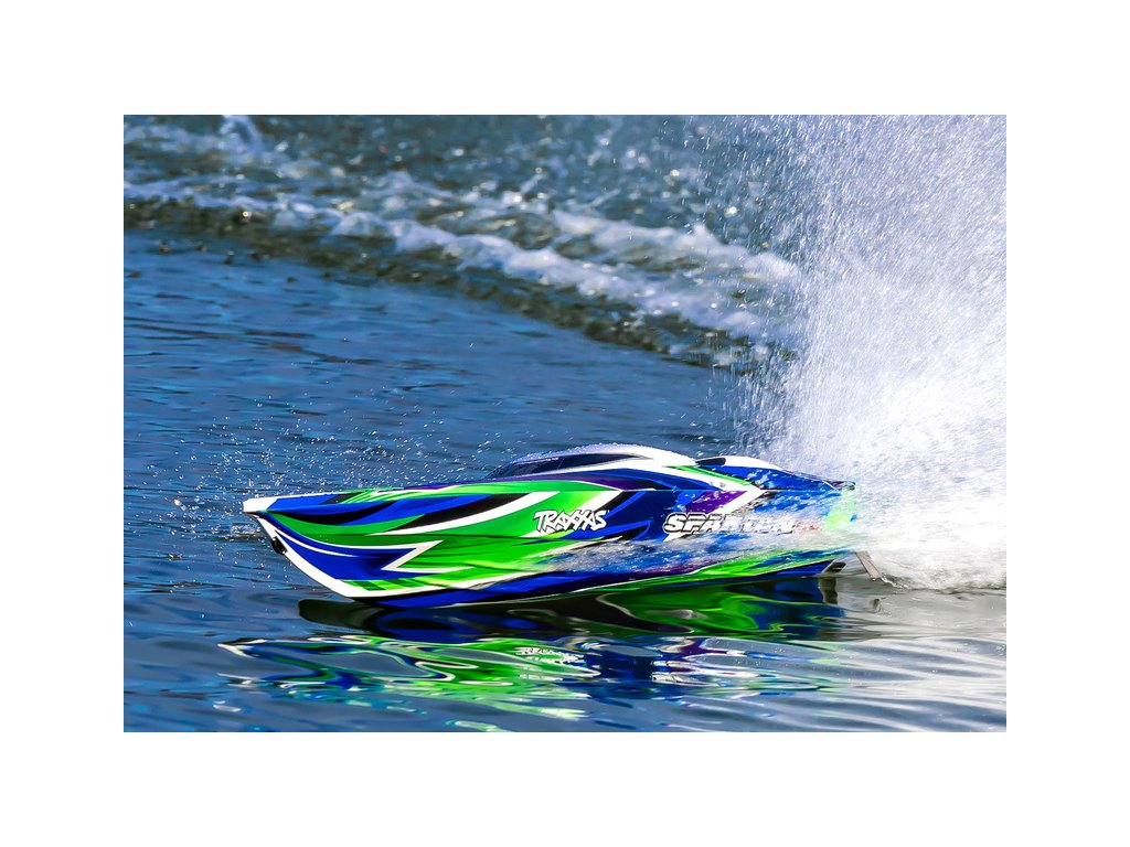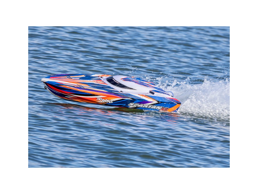 Extrémně výkonný a rychlý RC model lodi Traxxas Spartan SR 36", se kterým si užijete adrenalinovou zábavu. Špičková konstrukce, střídavý pohon a elektronická stabilizace vytvářejí bezkonkurenční kombinaci přesného řízení s rychlostí až 80 km/h, která nechá všechny za sebou. V případě převrácení modelu je loď nově vybavena funkcí Self-righting.