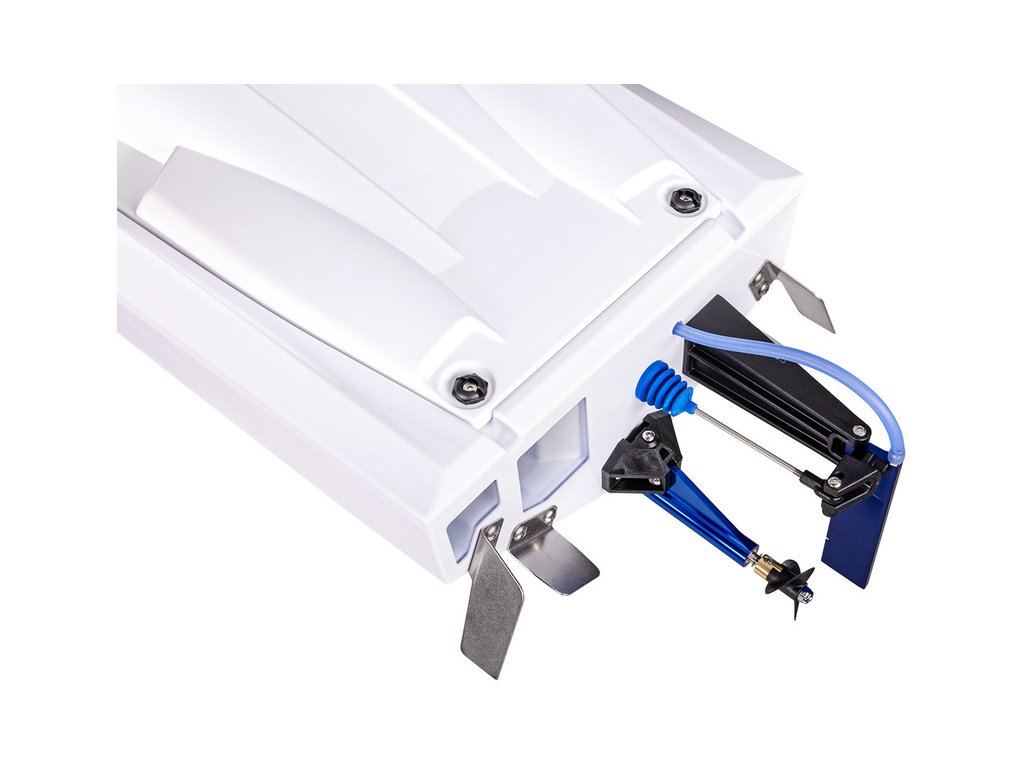 Na zádi modelu jsou instalované trimovací plošky, jež jsou z výroby nastaveny do neutrální polohy. Jejich mírným ohnutím můžete experimentovat a změnit jízdní vlastnosti pro vyšší stabilitu, hbitější řízení apod.