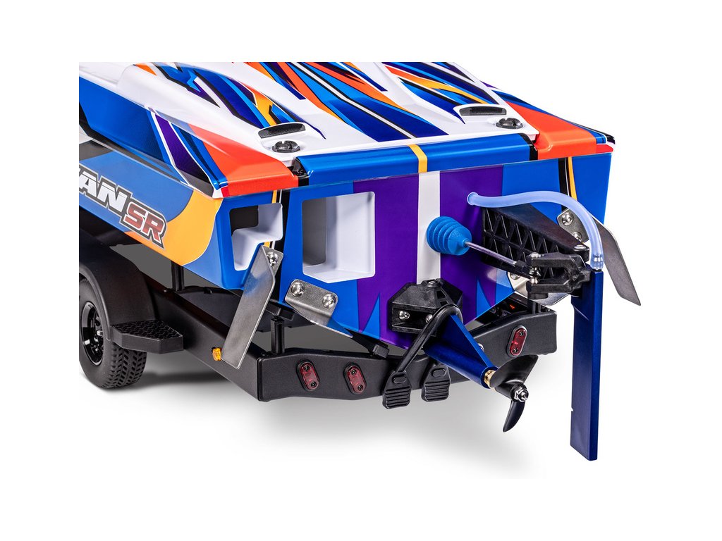 Pro stylovou přepravu lodi doporučujeme třínápravový přívěs Traxxas Spartan/DCB M41. Přívěs můžete táhnout za modely TRX-4 / TRX-6 (vč. high Trail) nebo Ford Raptor R. Pro další dávku realističnosti, lze přívěs dále vybavit volitelnou sadou osvětlení nebo elektrickým navijákem. Více informací v popisu u přívěsu.