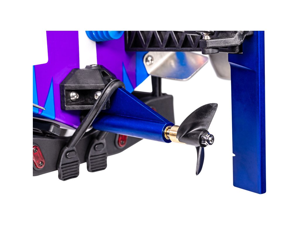 Směrové kormidlo z pevnostního hliníku řady 6000 je modře eloxované pro nezaměnitelný vzhled, bez obav o korozi. Šrouby na modelu jsou rovněž z nerezové oceli. Na čelní straně kormidla je nasávací otvor pro vodní chlazení.