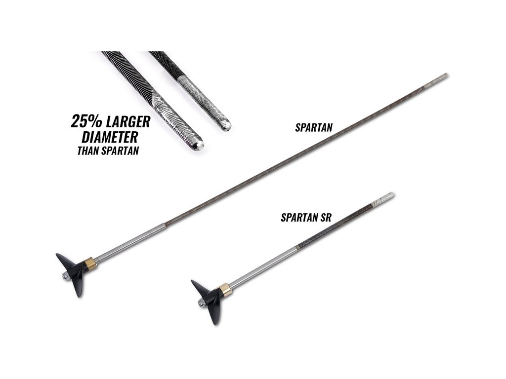 Nová ohebná hřídel 4.7 mm má o 25% větší průměr. Spartan navíc maximalizuje účinnost a snižuje odpor zkrácením hřídele a jejím napřímením.