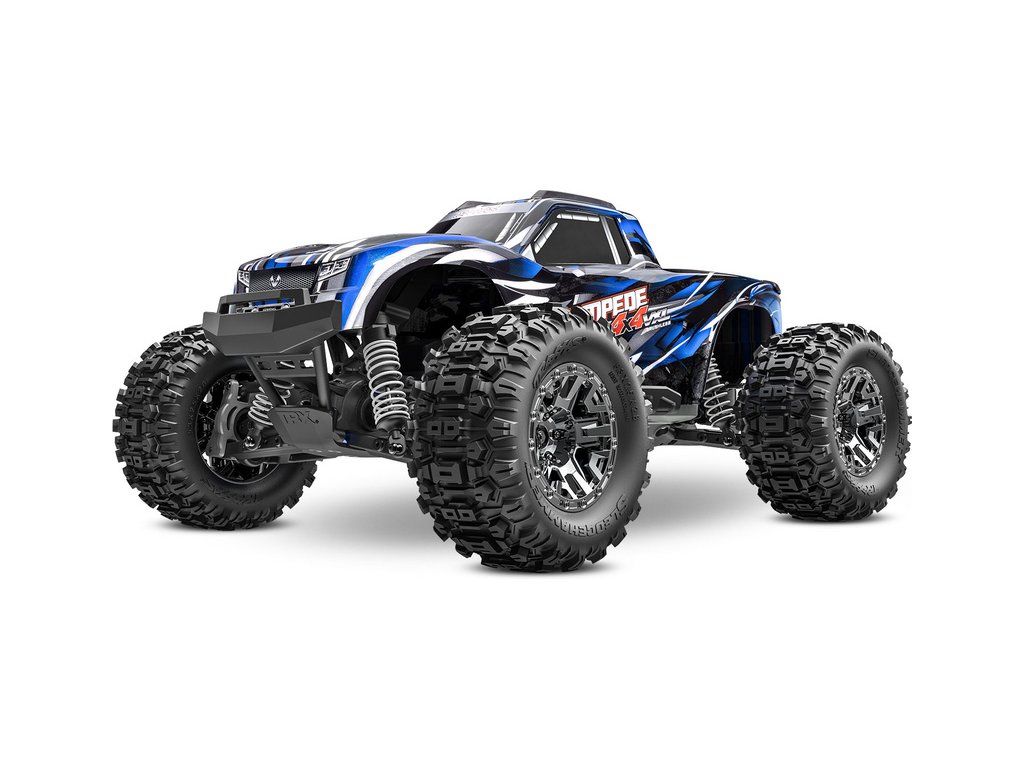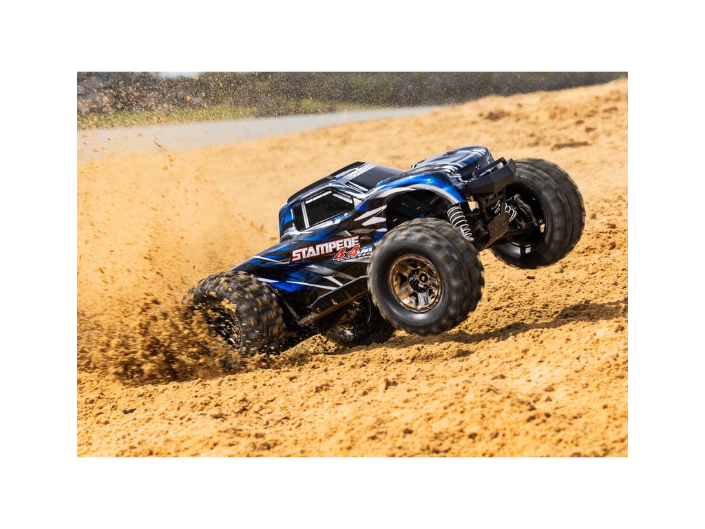 RC model auta Stampede 4x4 VXL je zpět – větší a silnější než kdykoli předtím! Díky nadrozměrnému střídavému motoru 540XL v kombinaci s osvědčeným regulátorem VXL-3S se model hravě a zábavně dostane přes všechny překážky a to rychlostí až 96 km/h. K výborné ovladatelnosti přispívá náhon 4x4 a elektronická stabilizace jízdy TSM. Pro vysokou odolnost je Stampede továrně vybaven sadou Extreme Heavy Duty. Použit je rychloupínací systém uchycení karoserie pro čistý vzhled a snadnou výměnu baterie. Pro náročné výzvy v terénu jsou použity pneumatiky SledgeHammer.